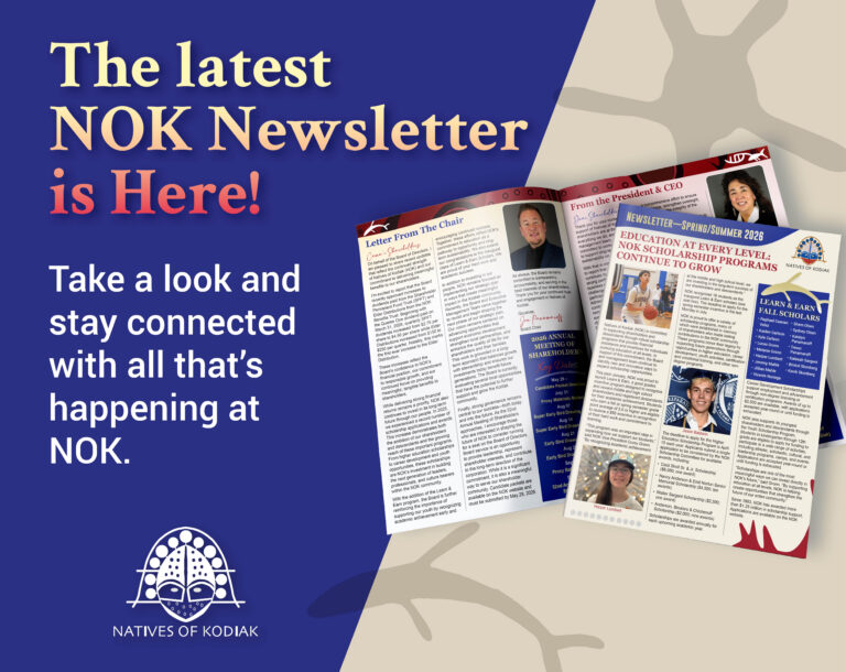 Natives of Kodiak is now accepting candidates from shareholders interested in running for a seat on the NOK Board of Directors. Shareholders who are interested in serving on the Board are encouraged to consider this important leadership opportunity and submit a candidate packet. Three seats will be up for election at the 52nd Annual Meeting […]